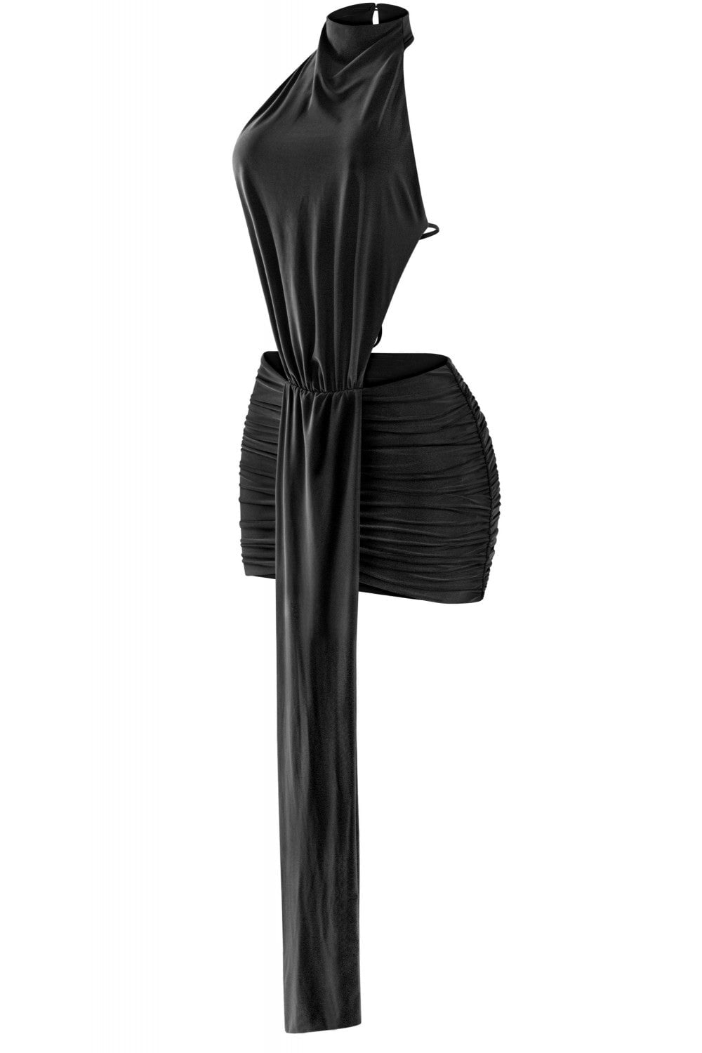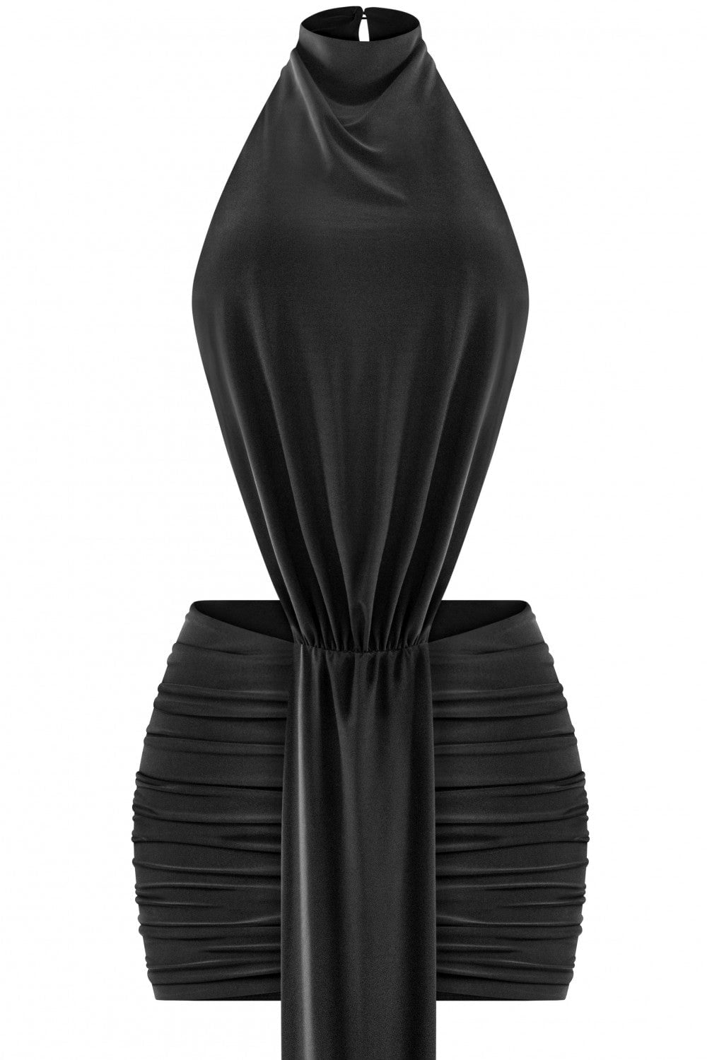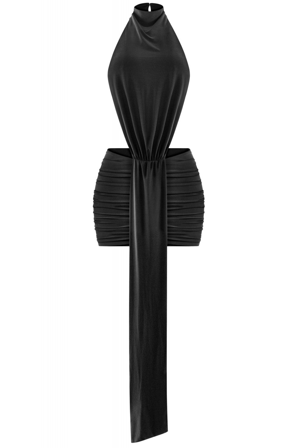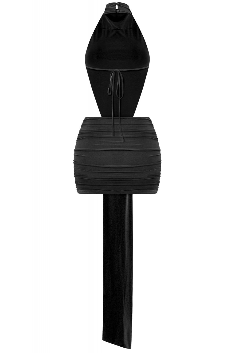 Meet the Braxton Mini Dress—your new go-to for turning heads and having fun doing it. This sleeveless wonder rocks a high halter mock neck that keeps things chic while the open back and flirty side cutouts add just the right amount of sass. Play with the adjustable back tie and button closure to customize your vibe, then let the stretchy, double-layered fabric do its thing. The ruched mini skirt moves with you, creating curves and confidence in equal measure. Daring, playful, and totally you. 94% Polyester, 6% Spandex. Made in USA