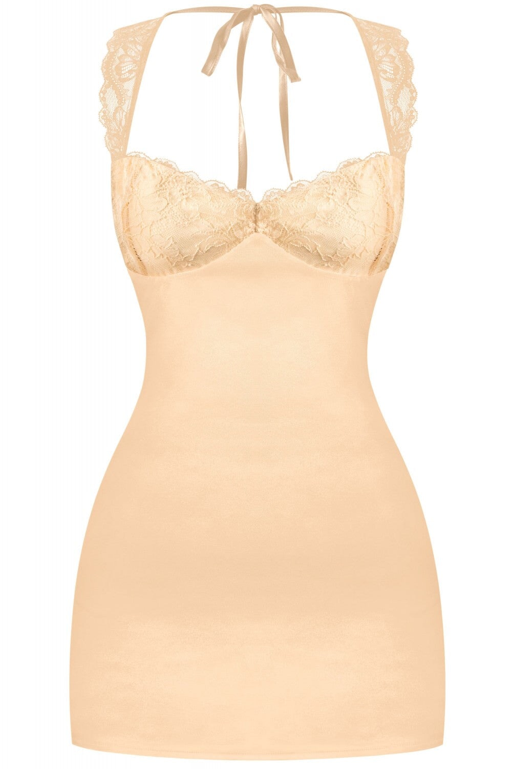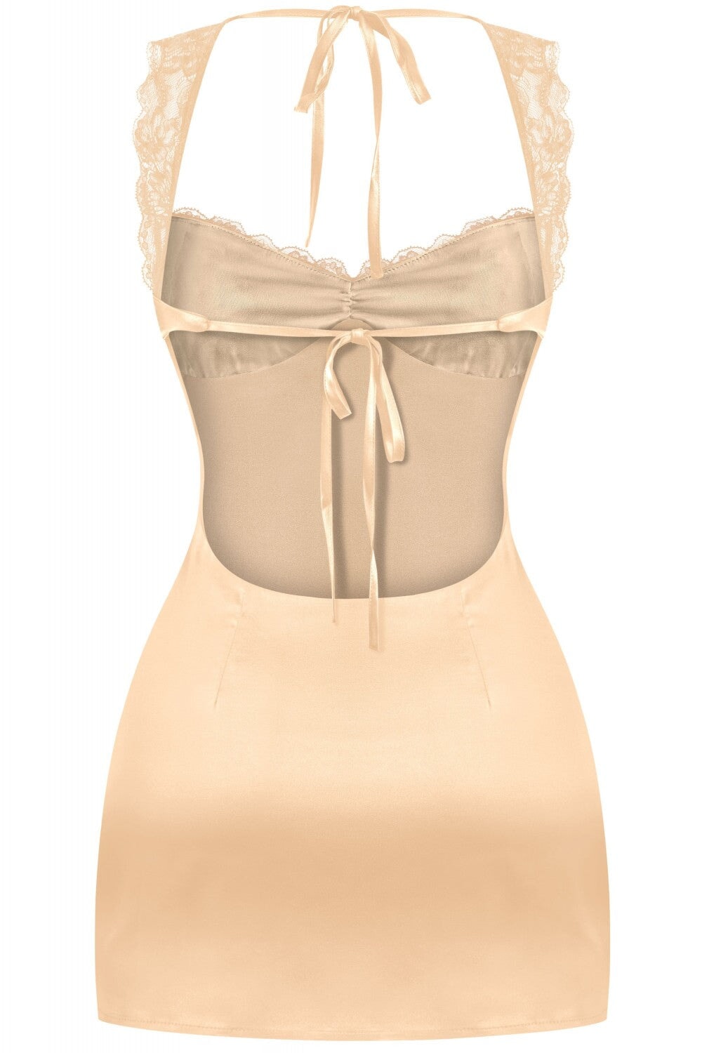 Heart Strings Satin & Lace Mini Dress Champagne **