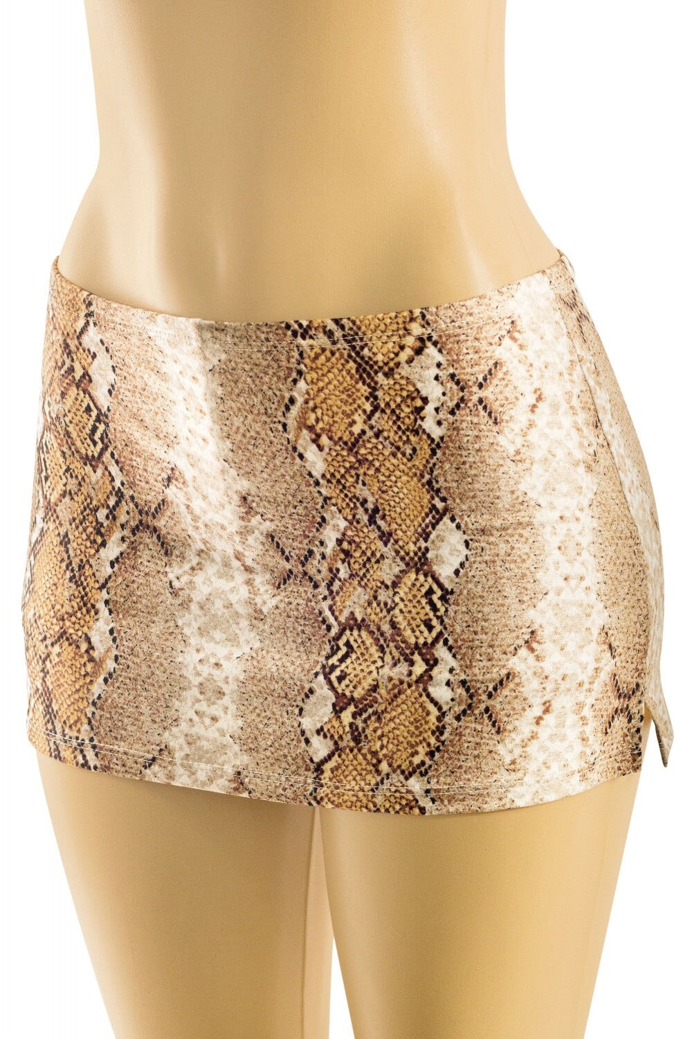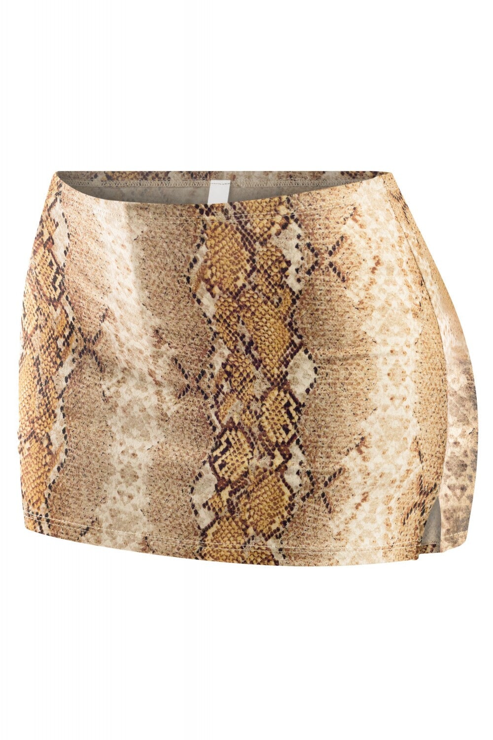 Embrace your bold side in this low-waisted snake print mini skort that pushes boundaries with attitude. The daring design features a sleek snake pattern on soft, brushed fabric that moves with you, while strategic side slits add an edgy touch. Built-in shorts underneath give you the confidence to move freely, and the stretchy material ensures a comfortable fit all day long. Perfect for those who aren't afraid to make a statement. 96% Polyester 4% Spandex Made in USA.
