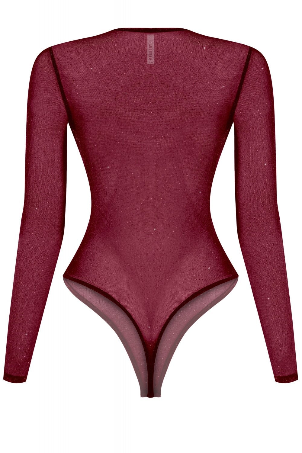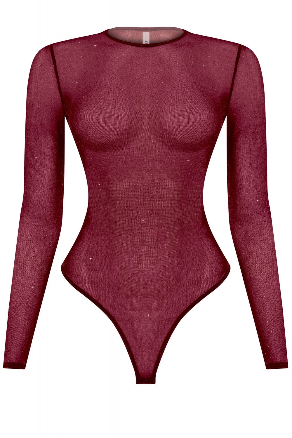 Still Got It Sheer Glitter Bodysuit Burgundy