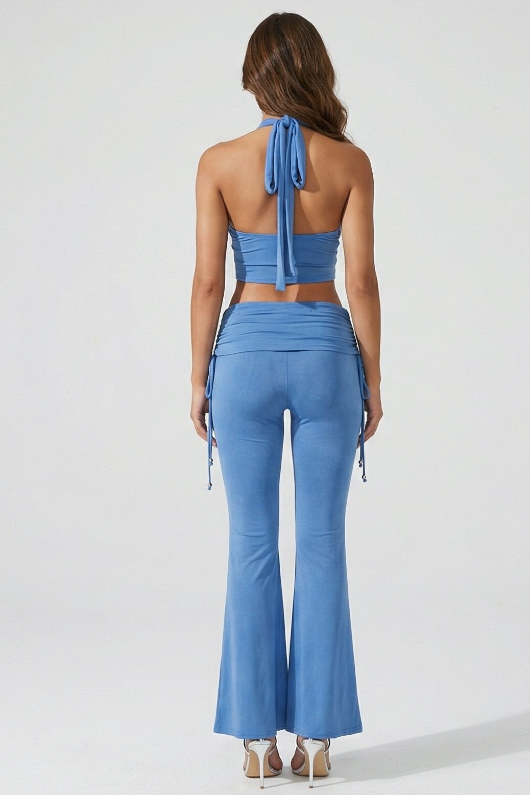 The Sky Dance Two Piece Set is your go-to for effortless style with serious flair. This playful ensemble features a sleeveless halter crop top with trim details and a lined, non-sheer construction that keeps you covered while looking amazing. The matching drawstring bottom boasts a flared hem and slim-fit silhouette that hugs your curves just right, with a comfortable 33" inseam. Crafted from a stretchy 96% polyester and 4% spandex blend, both pieces pull on for easy dressing. Hand wash cold and hang dry to keep your set looking fresh.