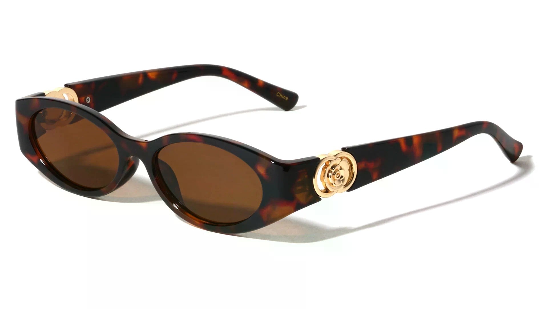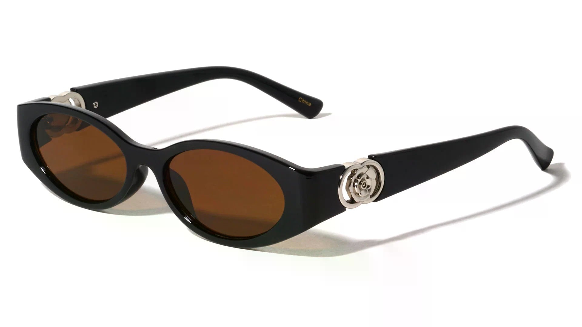 Two Ring Flower Hinge Oval Sunglasses
